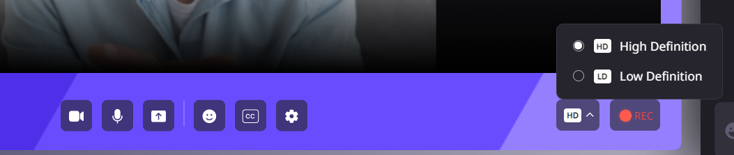 As a speaker, if you’re experiencing low bandwidth, you can change the resolution to low definition for a better experience.